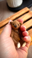 Мініатюрний колекційний ведмедик «Піко».Його зріст усього 8 мм! Тедді виготовлений з віскози для тедді, має 5 шплінтів та наповнений тирсою і металевим гранулятом. Має скляні очі, рухомі лапки та голову.